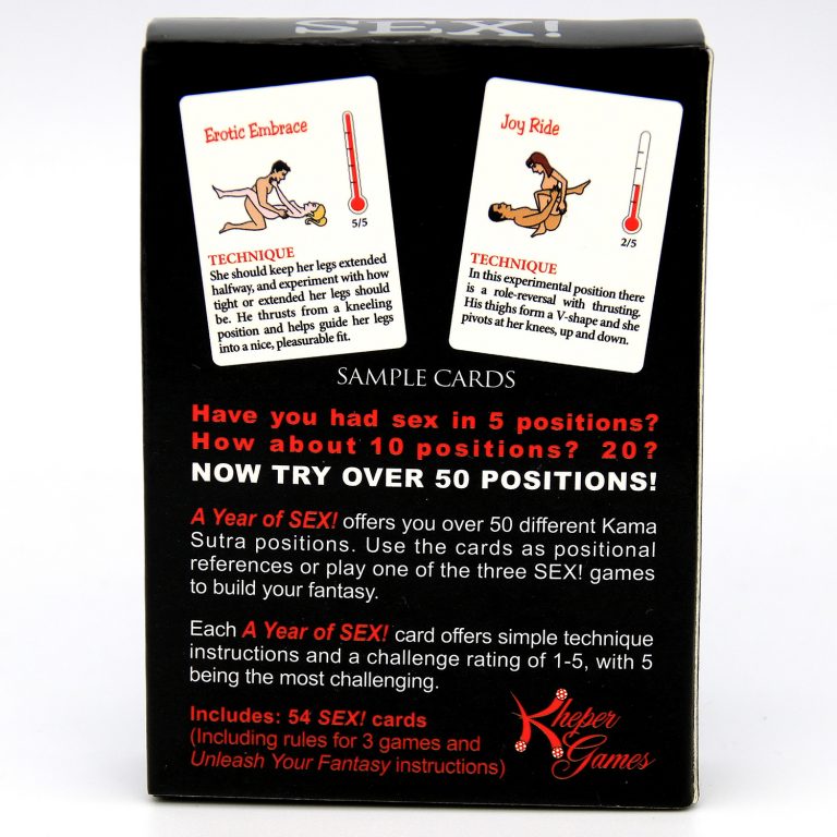 A year of SEX! Offers you over 50 different Kama Sutra positions. Use the cards as positional referencess or paly one of the 3 sex games to build your fantasy.